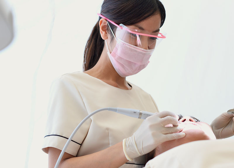 患者様のお口に触れられるのは、国家資格を持つ歯科衛生士のみであるとご存じですか。当院では歯科衛生士が、歯のクリーニングやメンテナンス、口腔衛生の指導を丁寧に行い、医療助手との業務のすみわけをしっかりと行っています。矯正など専門的な知識を必要とする領域では、外部の専門家と連携するなど、チーム体制での診療に取り組んでいます。