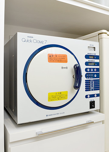 滅菌を11分で完了できる、ハイスピードタイプの滅菌器を使用し、患者様のお口に触れる器具を常に清潔に保っています。