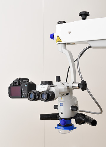 患部を拡大し、光を当てながら見ることができる歯科用顕微鏡で、お口の中のより細かい箇所をチェックします。拡大鏡(ルーペ)の2倍以上まで拡大して見ることができるため、治療の精度を大幅にあげることができます。