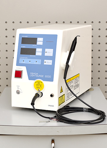 当院では歯科用ソフトレーザーを導入し、歯周病治療をはじめとした軟組織(歯肉や口腔粘膜)の異常を熱作用によって治療しています。知覚過敏症や歯根の治療、色素が沈着した歯肉を治療する際にも応用されています。